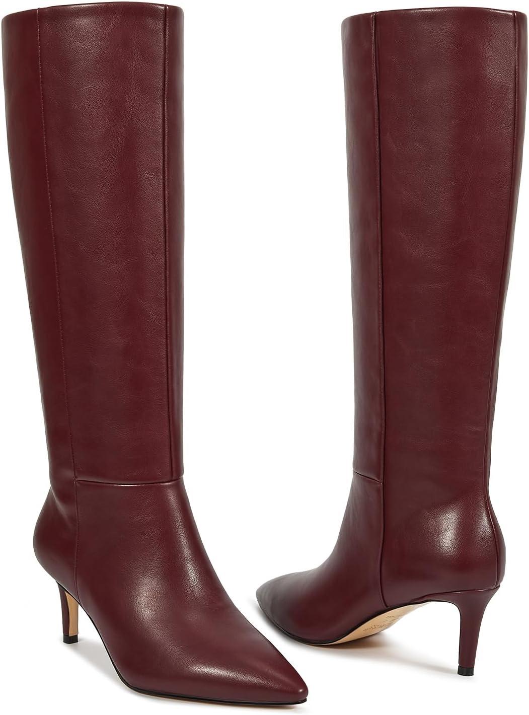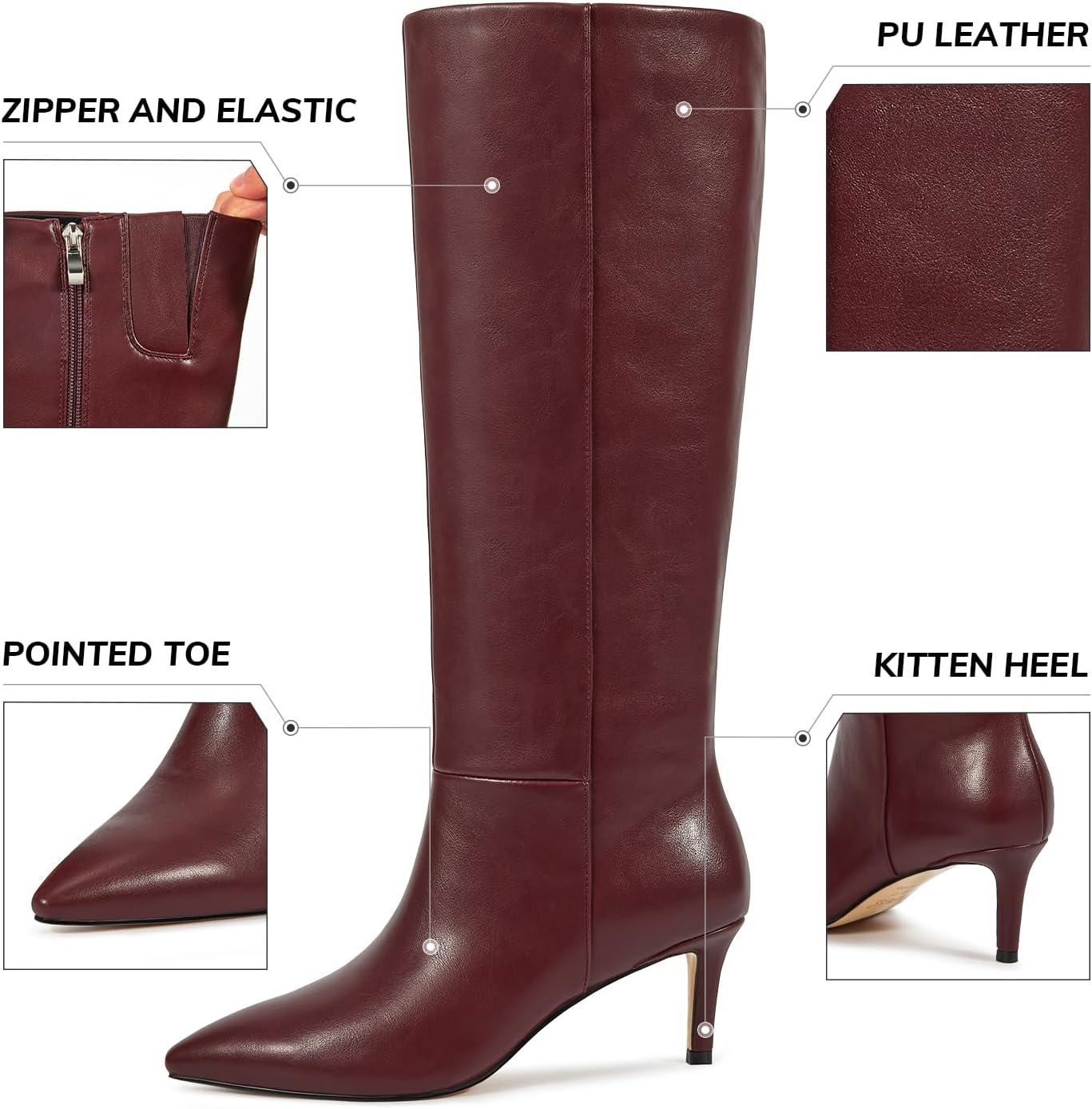 wetkiss Knee High Boots for Women, with Kitten Heel and Pointed Toe Design, Classic and Sexy(D-burgundy(random))