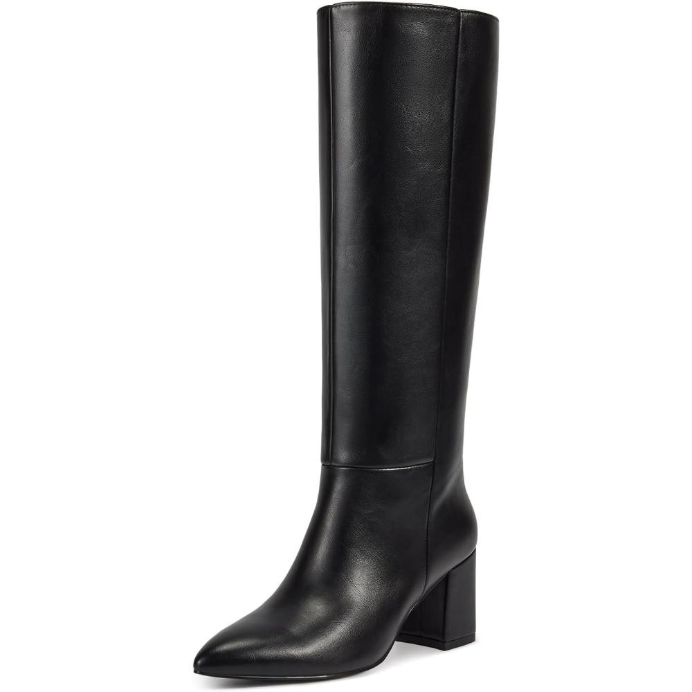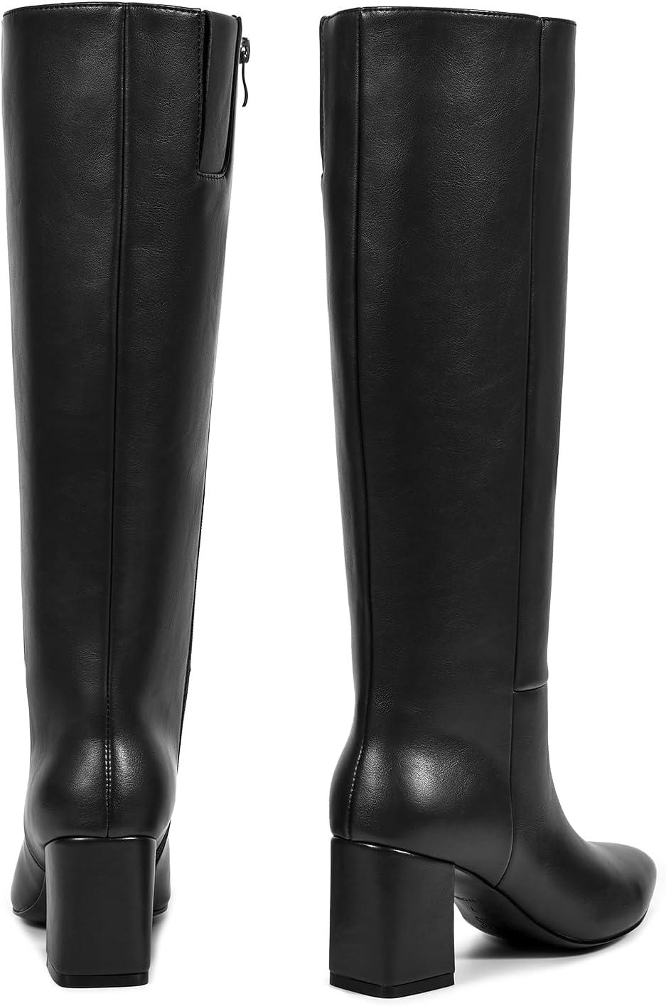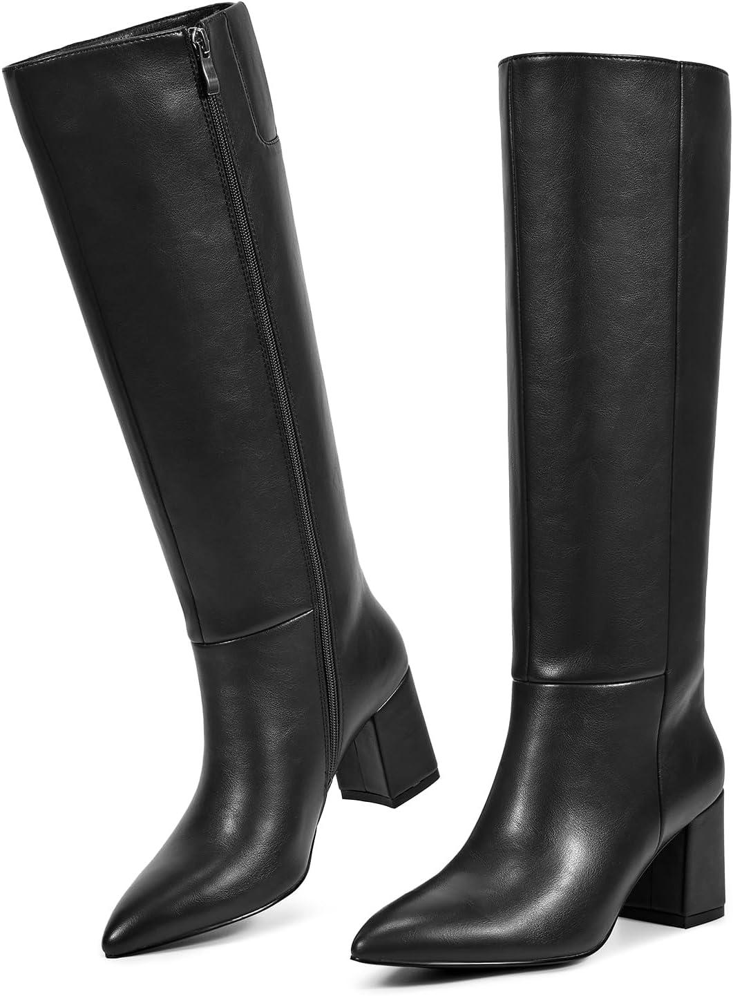 wetkiss Knee High Boots Women Chunky Heel Pointed Toe Tall Pull-On Dress Fashion Fall Long Tall Boot(A-black-zipper)