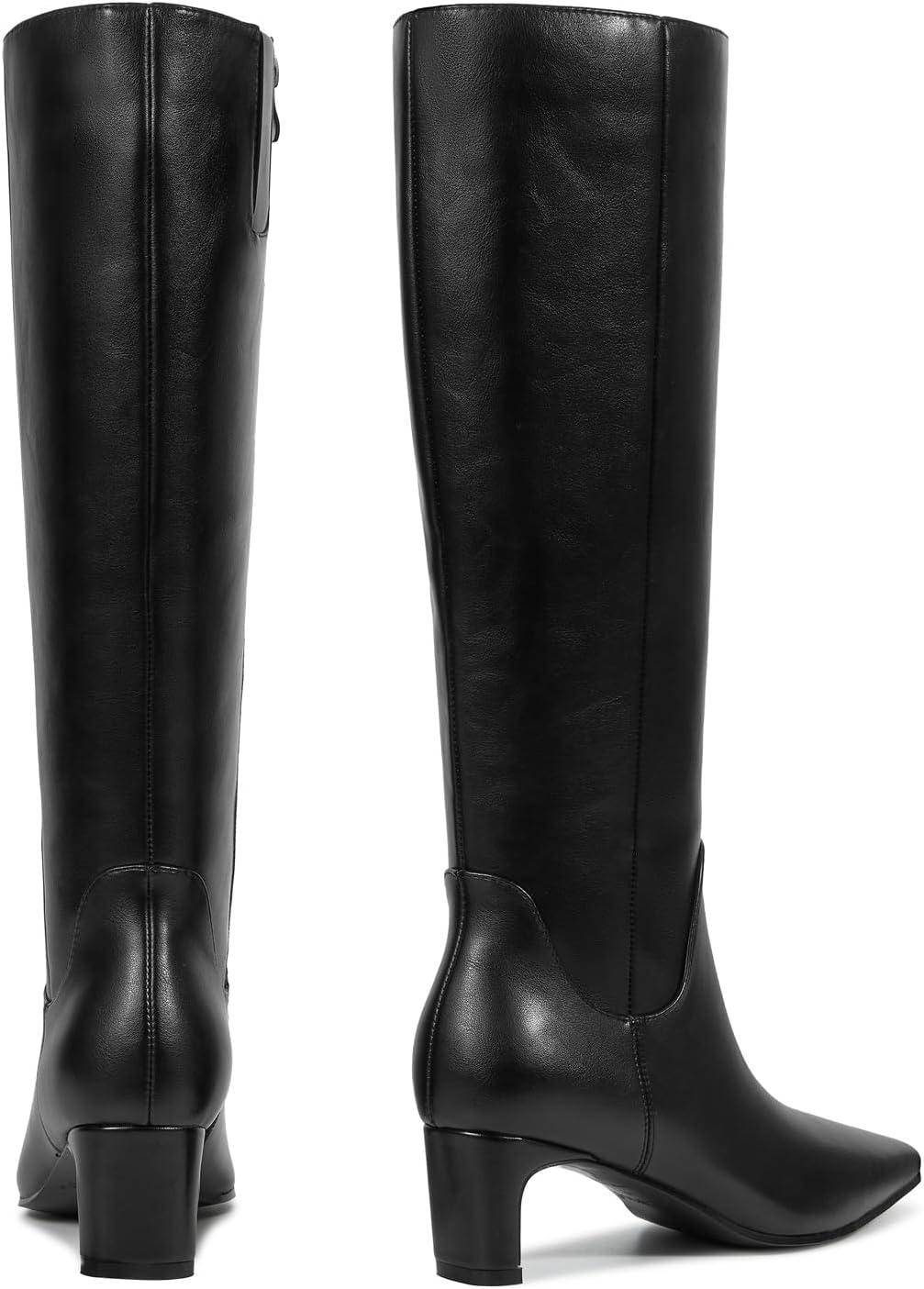 wetkiss Knee High Boots Women Slip On/Zipper Boots for Work Date Dress Party Club Shoes(Black – Low Heel- Zipper)
