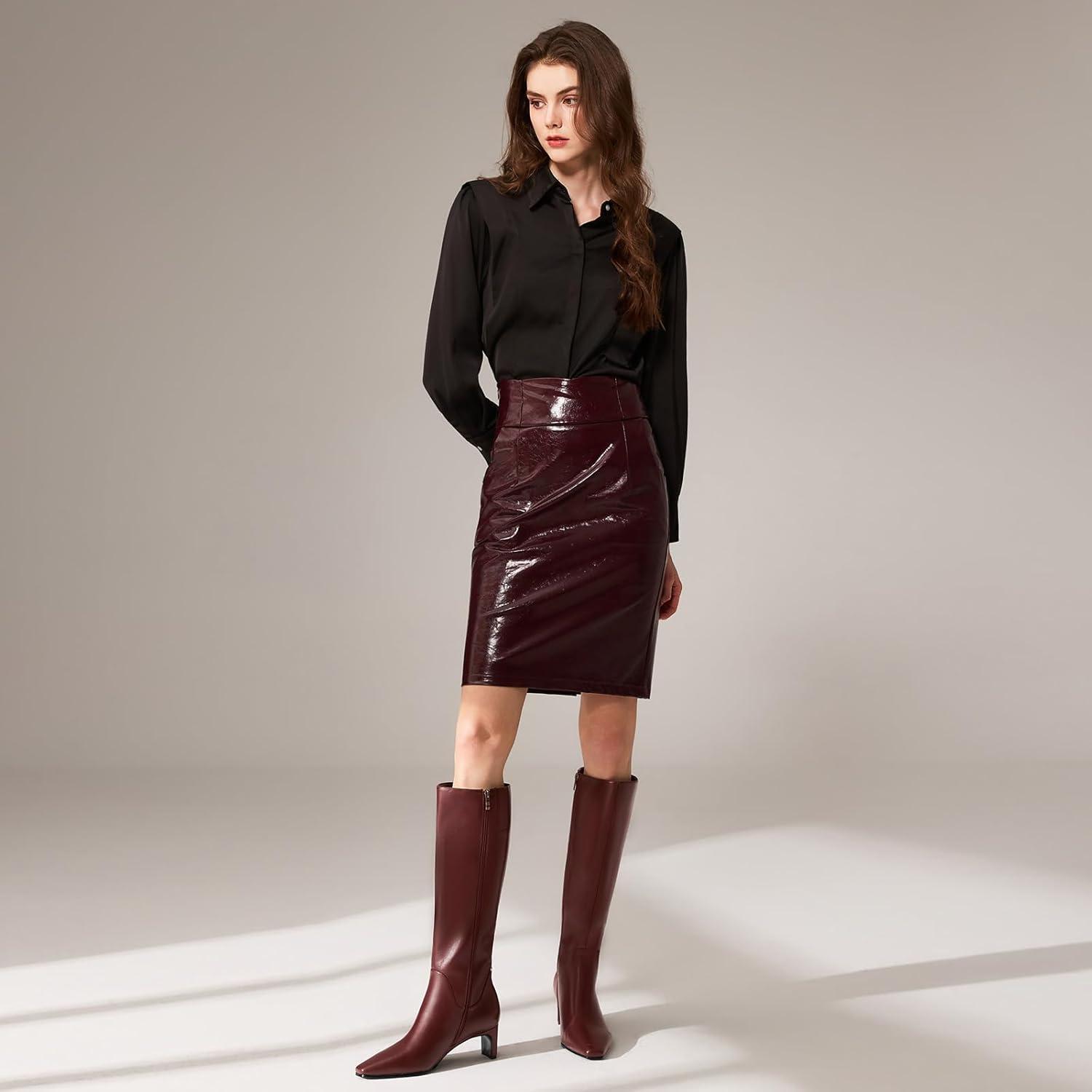 wetkiss Knee High Boots Women Slip On/Zipper Boots for Work Date Dress Party Club Shoes(Burgundy – Zipper)