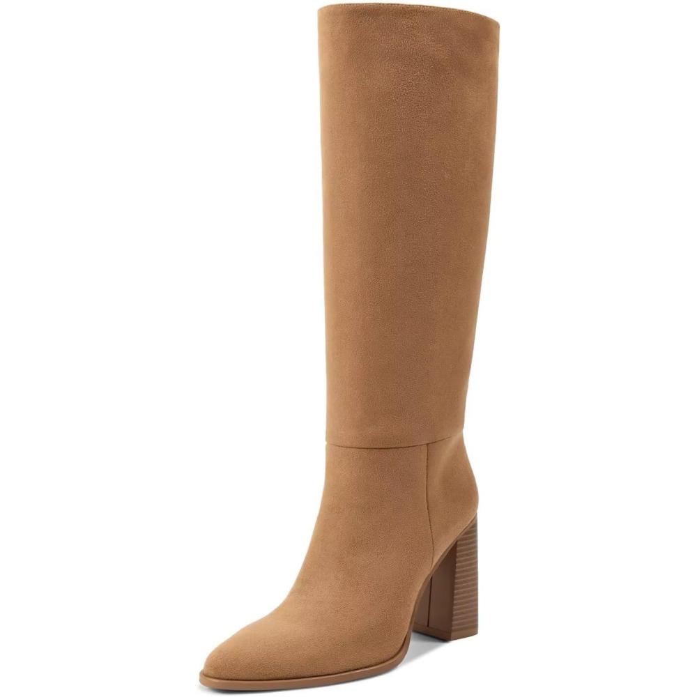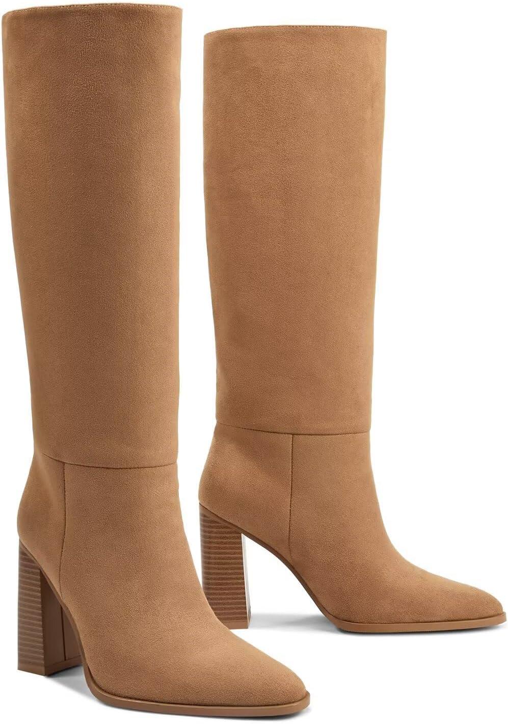 wetkiss Knee High Boots Women Slip On/Zipper Boots for Work Date Dress Party Club Shoes(Suede Brown – Pull on)